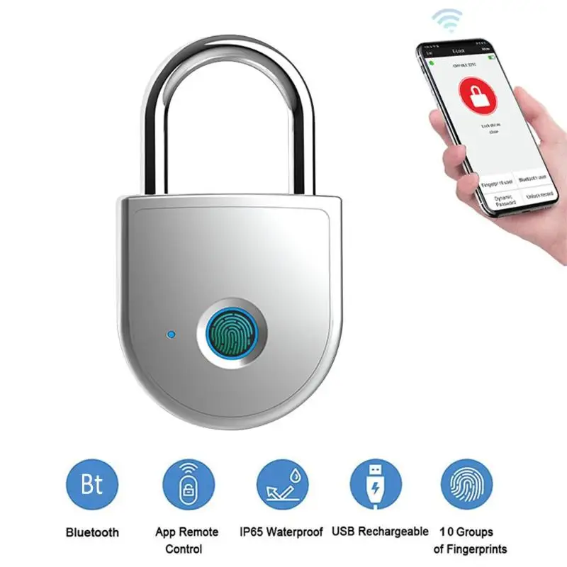 APP Control Fingerprint Lock Bluetooth Electronic Padlock Waterproof USB Rechargeable Keyless Home